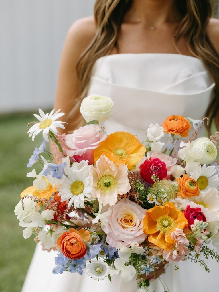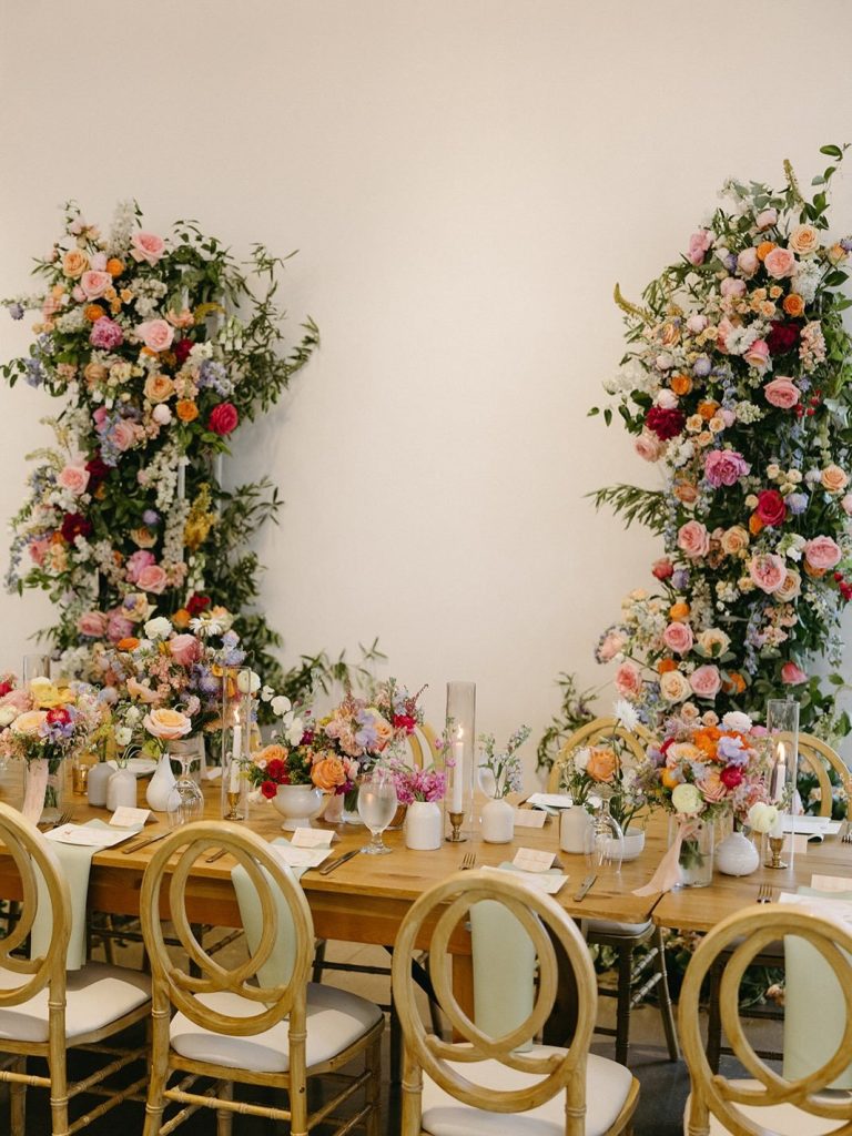 It was the most perfect sunny day with many colors & soft flowers! We preferred our day to be bright and fun and made everything our own style. All of our friends and family were together to celebrate and it was just a huge party with everyone we love. My vision came to life in every way and it was the best day getting to marry my best friend!” – The Bride