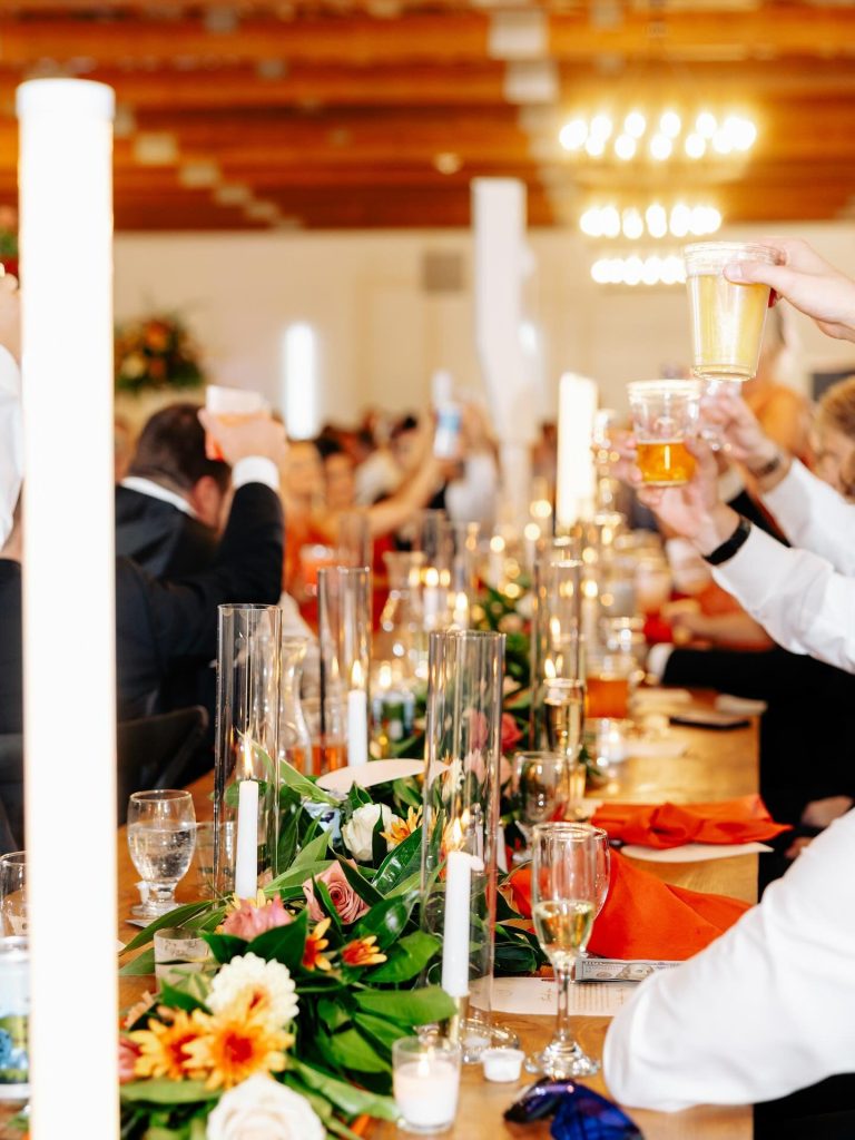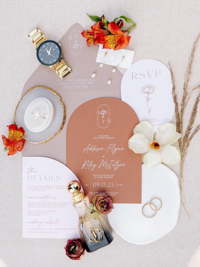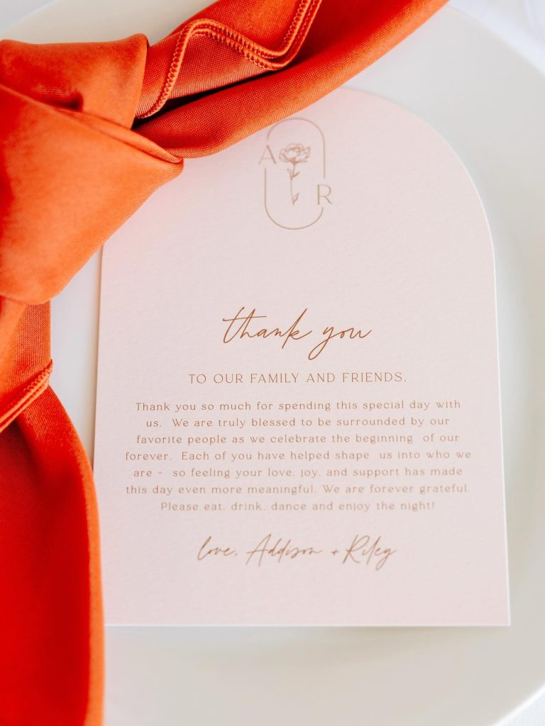 Pops of orange and all the personality! Addy + Riley’s wedding brought a fresh, joyful energy. Their day was the perfect blend of fun, color, and thoughtful design, all crafted intentionally by the talented team at Bright DeSigns. From the moment guests arrived, every detail was perfection. One of the standout features of the day? Their custom monogram. Thanks to Noted Design, the invitations and signage carried their bright palette and signature style throughout the celebration. From welcome signs to detail pieces, everything felt cohesive, intentional, and full of personality. We especially loved the A + R that was monogrammed on almost everything!
