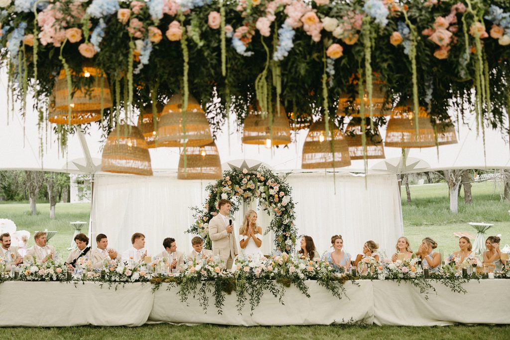 Anna + Eli’s wedding was a garden-party dream come true. With soft colors, outdoor touches, and their favorite people all around, every moment felt so special. From Anna’s stunning Rosalie gown and her glowing tan by Tanique, to the elegant Milestone Event Rental tent that brought the outdoor setting to life with every detail coming together so beautifully. The floral arrangements, decor, and coordination by White Willow Events tied everything together perfectly, setting the scene for a night full of laughter, love, and unforgettable memories. It was a day Anna and Eli will cherish forever!