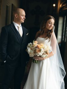 Elise and Andrew’s romantic evening was elegantly decorated by The Wedding Trailers, who transformed the venue with an impressive array of candles. The soft, flickering glow created a warm and inviting atmosphere, illuminating The Harmac to create the perfect ambiance. Everywhere you looked, candles of varying heights lined the tables. Madisen Timp Weddings captured every detail with her stunning videography style, ensuring that the magic of the evening would be preserved forever. Everything came together flawlessly at the distinctively beautiful venue of The Harmac, resulting in a truly unforgettable celebration of their union.
