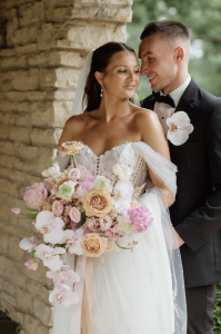 Emily and Aamon’s wedding brought a touch of Europe to the Midwest, blending soft pastels with timeless details. Aamon’s sharp suit from Skeffingtons Formal Wear fit perfectly with the elegant atmosphere, and Kyndal Elise Photography beautifully captured the intimate moments that made the entire day unforgettable. As the night went on, JM3 DJ’s + Productions kept the party going and kicked the celebration into high gear, with guests packing the dance floor!