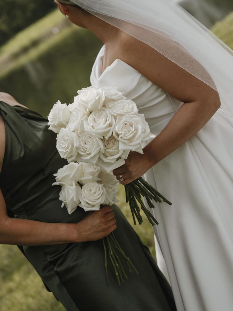 Rooted in tradition with a modern edge, Hope & Blake’s wedding day unfolded as a timeless celebration filled with intention and warmth. Hosted at Northbridge Event Center, the space was transformed with rich, deep olive tones that set a refined yet inviting atmosphere. Timeless white rose bouquets by CamBam Custom Floral added a classic elegance, beautifully balancing the palette throughout the day. Hope’s statement bow gown from Modern Dress completed the look, blending modern bridal fashion with enduring style. Surrounded by their closest family and friends, the couple shared the day with an overwhelming sense of gratitude and connection.