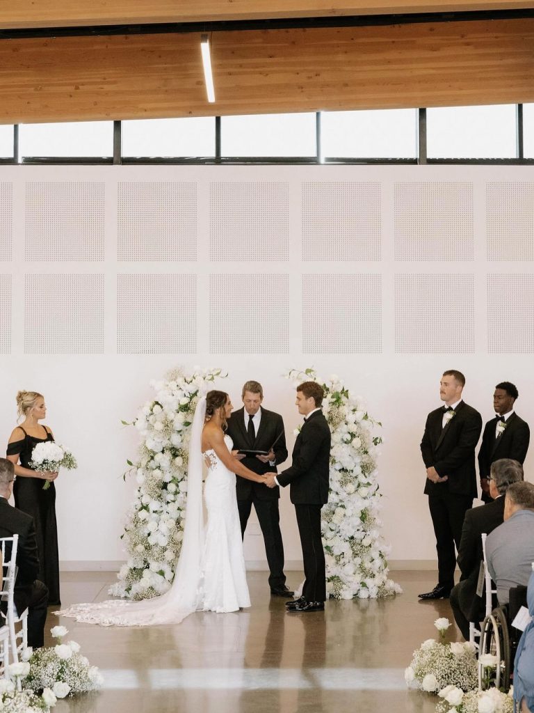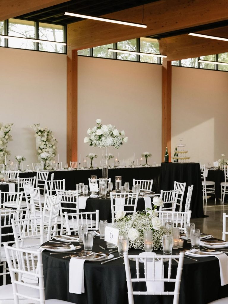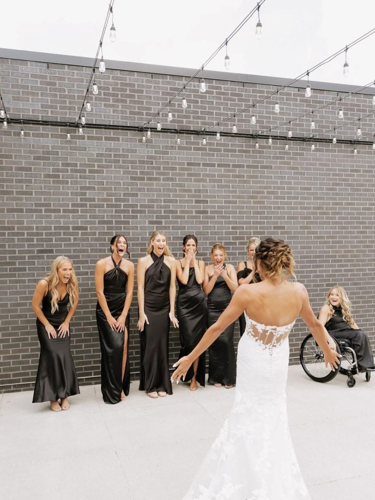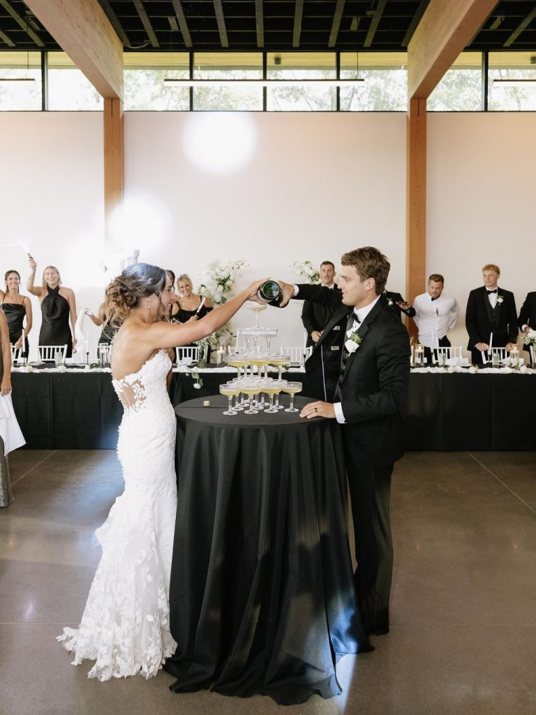 Headed into the weekend with full hearts after looking back on Paige and Braden’s stunning summer wedding at the Des Moines Heritage Center. A classic black and white palette set the tone for a celebration that felt both elevated and effortlessly fun, proving that timeless style never goes out of fashion. From the very beginning, every detail was thoughtfully curated to reflect a clean, sophisticated aesthetic. Paige looked absolutely radiant with a chic bridal up-do by Hair by Grace Joy, perfectly complementing the overall vision of the day. The venue itself provided a beautiful backdrop, allowing each design element to shine while still feeling cohesive and refined.