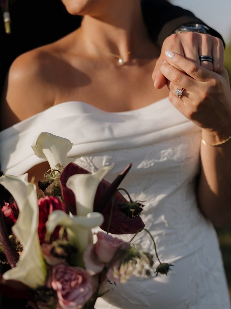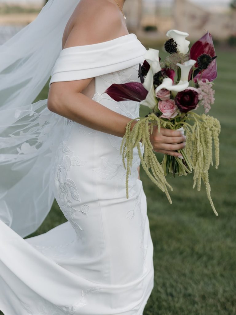 “We met through mutual friend in 2019 and were friends for a year before we started dating in 2020. We were in college at the time and got sent home for covid. Since we were both from Omaha, we used that time to spend lots of time together, developing our relationship. We learned we both very much enjoy being outside! Whether it’s walking our two dogs, playing sand volleyball, gardening, or just sitting on our back deck. The outdoor space at Bella Terre Vineyard overlooking the vineyard is gorgeous, and we knew it would be the perfect place for both our ceremony and reception.” – Peyton (bride) 🤍