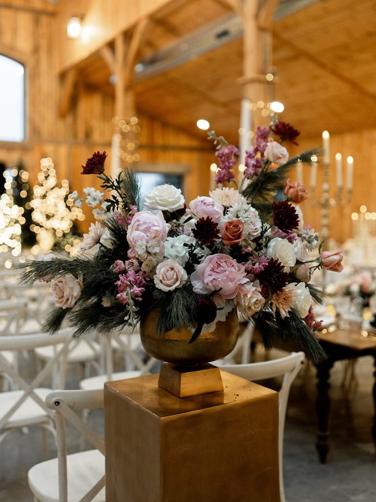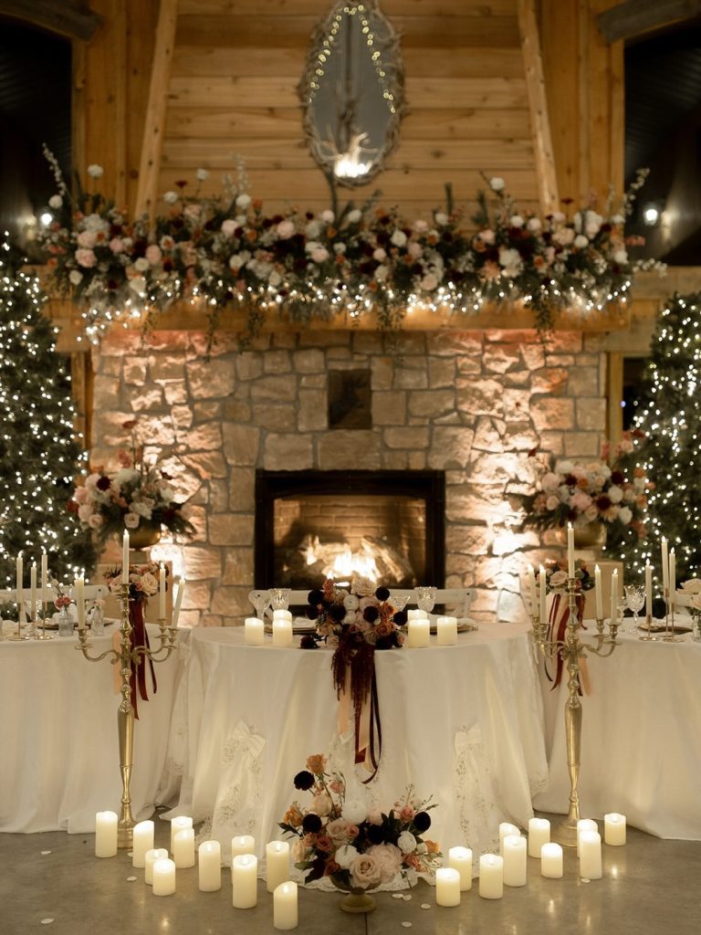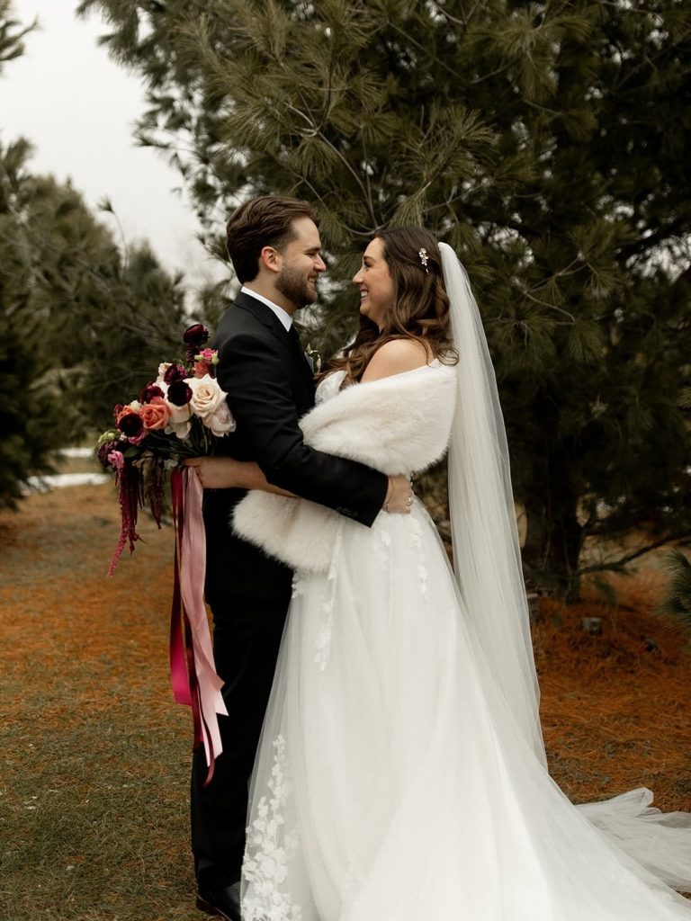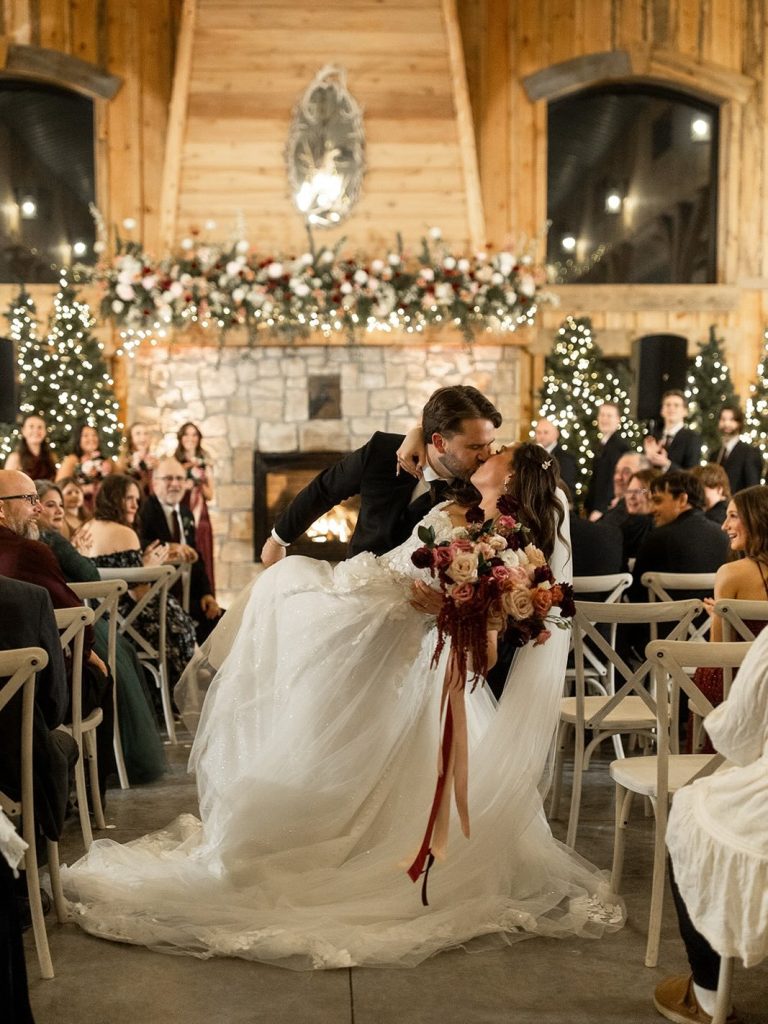 Spring may be on the way, but we’re still holding onto the cozy magic of Micale and Sophie’s winter wedding. Their New Year’s Eve celebration felt warm and intimate, with candlelight setting the tone for a night surrounded by the people they love most. “Our wedding felt like a hug,” Sophie shared—and every detail reflected that feeling. Rich, dramatic florals by Shelly Sarver Designs filled the space, from lush arrangements to a stunning fireplace installation, beautifully contrasting the evergreen backdrop. It was the perfect way to ring in 2026 as husband and wife. Cheers to Micale and Sophie!
