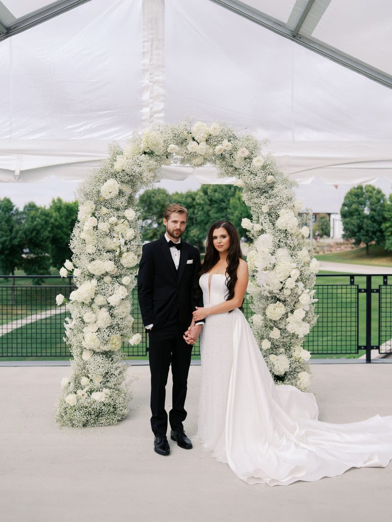 Guests enjoyed a beautifully plated meal by Baratta’s, adding another thoughtful touch to the day and allowing friends and family to slow down and savor the celebration together. Shelby looked radiant in a gown from Rosalie, while Riley complemented the timeless feel of the day in classic attire from Schaffer’s Bridal, creating a look that felt effortlessly sophisticated and perfectly in sync with the romantic color palette.