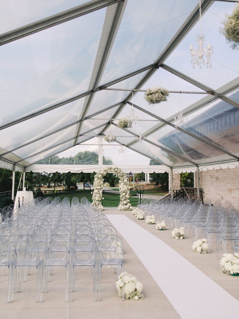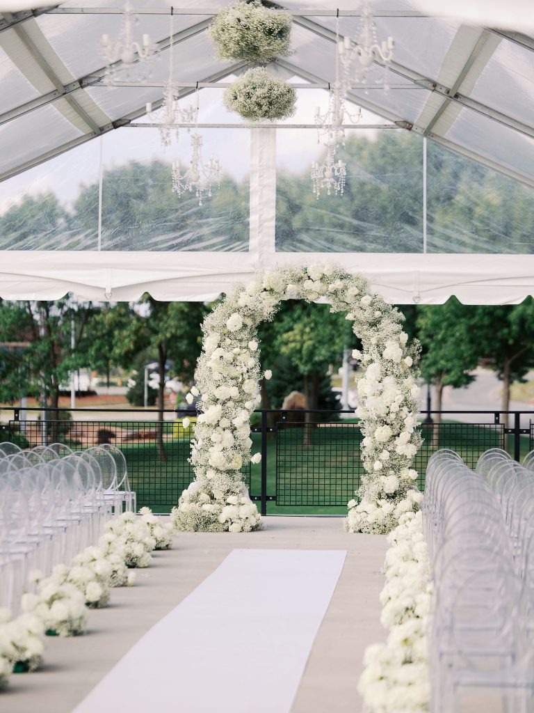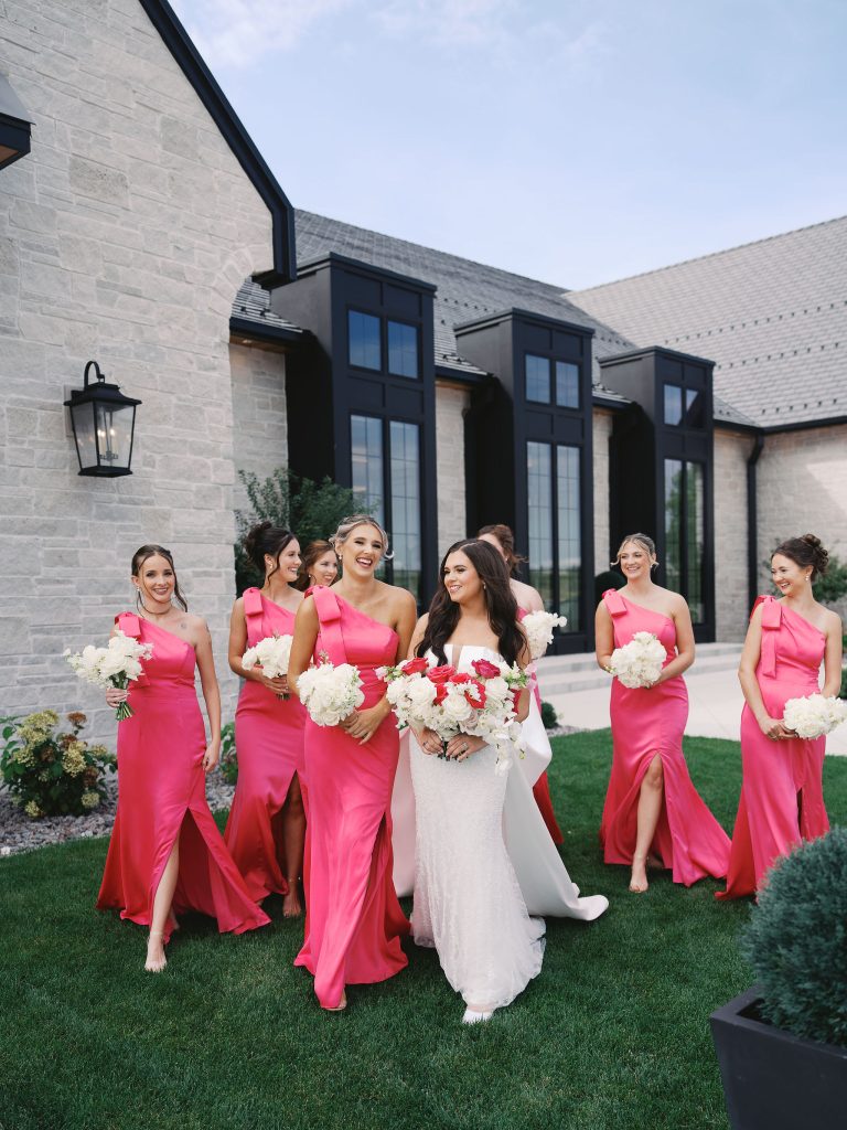 Drenched in hot pink hues and dreamy, layered details, the celebration felt lively, stylish, and full of warmth. Hosted at The Clubhouse at Talons, guests were welcomed into a setting that balanced elegance with fun, creating an atmosphere where everyone could truly celebrate alongside the couple. An ethereal ceremony tent by Milestone Event Rental added softness and romance, setting the stage for heartfelt vows and unforgettable moments. Every element, from the florals and decor to the invitations and overall design, was carefully curated to create a cohesive and immersive experience, showcasing the creativity and attention to detail behind the planning.