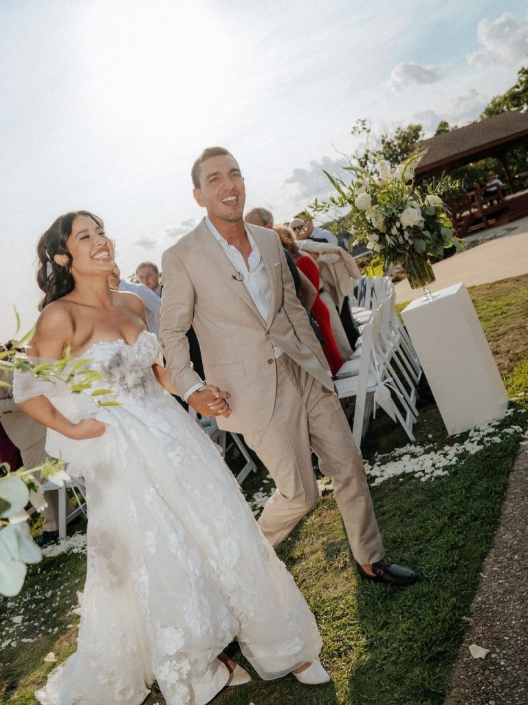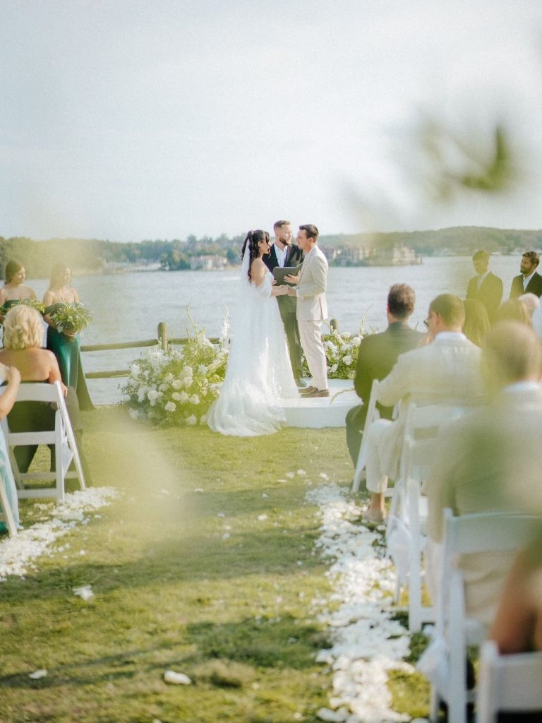 When it comes to statement florals, Bella + Row knows how to make them the moment, and Maya & Connor’s wedding in the Ozarks was the perfect proof. Surrounded by the natural beauty of the landscape, the day unfolded with a timeless palette of soft ivory blooms and lush greenery, creating an atmosphere that felt both romantic and refined.