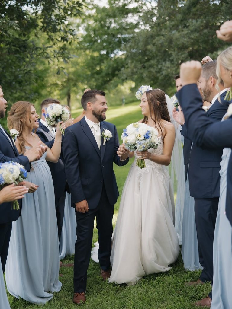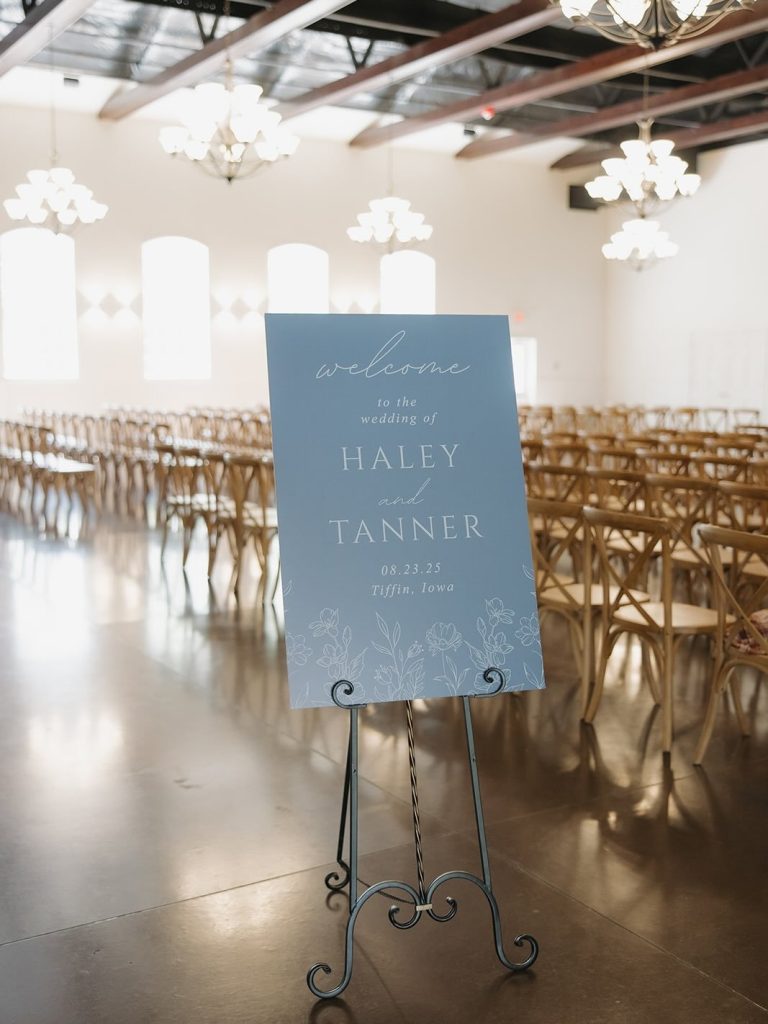 Haley and Tanner’s wedding day was a joyful celebration filled with soft blue hues, heartfelt details, and a dance floor that stayed packed all night long. From the stunning décor to the nonstop energy of the reception, every moment each moment highlighted the joy and meaning behind celebrating the start of their forever together. Guests were treated to an incredible dining experience by Zest Catering Co, whose flavorful menu kept everyone fueled for a night of celebrating. The space was beautifully transformed by Unique Events, tying together the romantic blue palette and elevating the entire atmosphere.