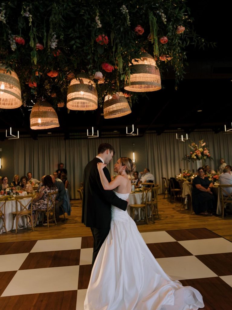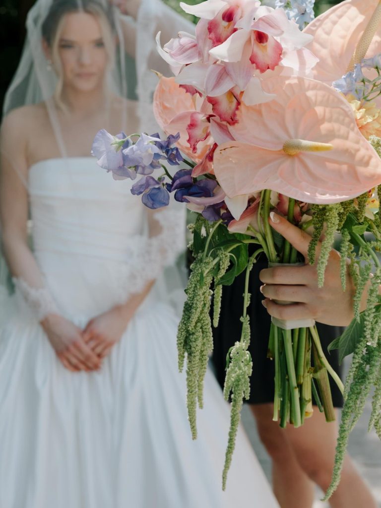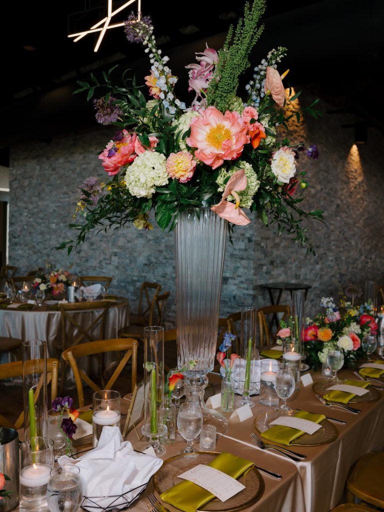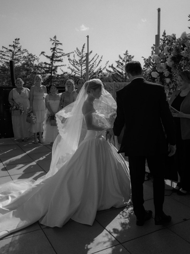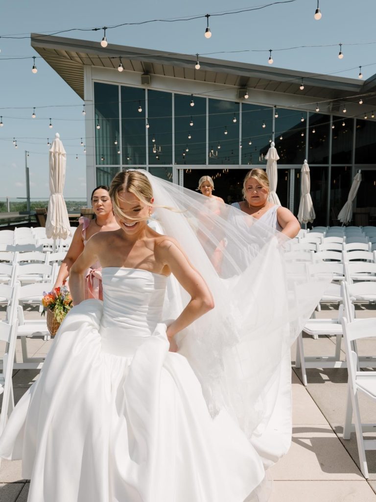 Becca and Tyler celebrated at The Heights Rooftop, where sweeping rooftop views and an open-air ceremony created the perfect setting for a day full of joy, color, and meaningful details. From the very start, the celebration felt elevated yet effortlessly personal. Their outdoor ceremony space was beautifully transformed by White Willow Events, whose expert planning, floral design, and decor brought the couple’s vision to life in a colorful way. Every floral, table setting, and detail added to the vibrant energy that carried throughout the day. Becca was radiant in her bridal gown from Rosalie Bridal, while Tyler looked timeless and polished in his attire from Skeffingtons Formal Wear.