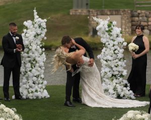 The Clubhouse at Talons in Ankeny, Iowa, is a standout choice for couples seeking a unique wedding venue. This upscale event space features a 7,000-square-foot European-style ballroom with soaring windows, sparkling chandeliers, and a dramatic see-through fireplace, combining elegance with grandeur. With an uncovered patio overlooking the scenic Talons Golf Course, it’s an ideal setting for romantic ceremonies and breathtaking golden-hour portraits. The venue’s blend of classic sophistication and captivating views truly sets it apart in Iowa’s wedding landscape.
