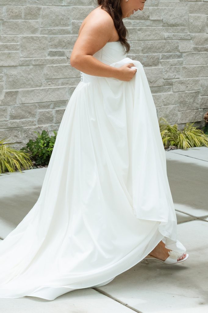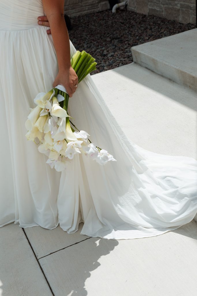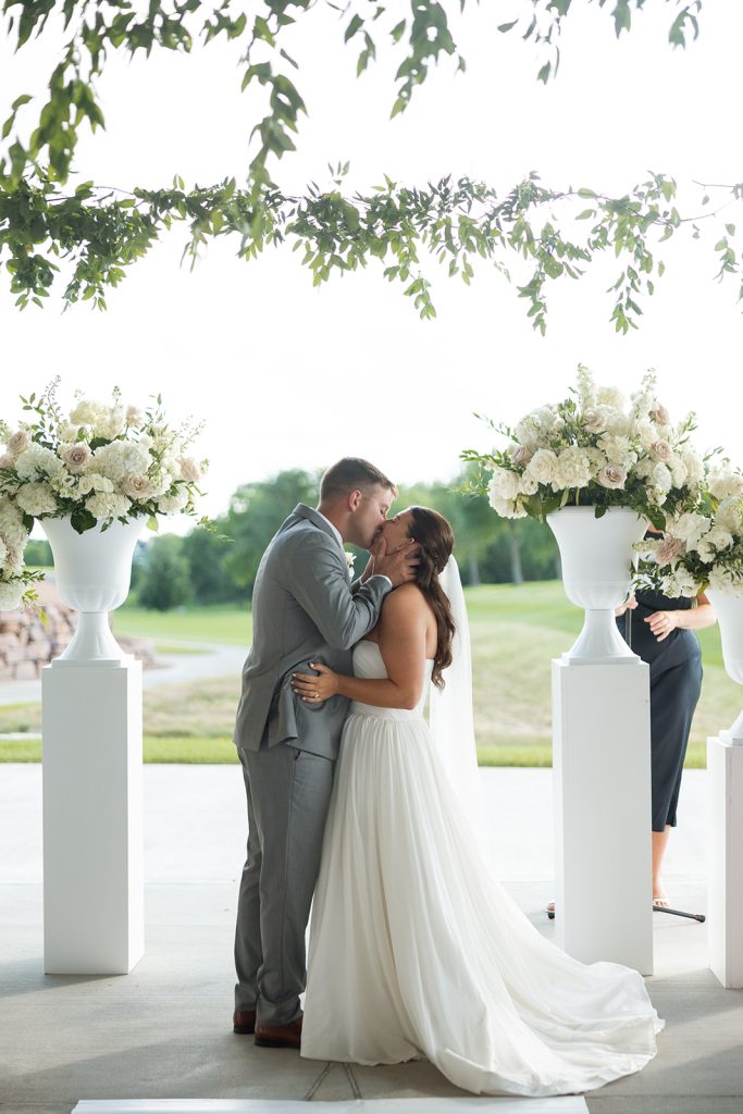 The Clubhouse at Talons provided the serene course views that framed their vows, with their ceremony taking place underneath the pavilion, while White Willow Events delivered the design that made the ceremony feel personal and beautiful. Sydney’s gown from Rosalie completed the look; a timeless, strapless gown in which she looked absolutely exquisite.