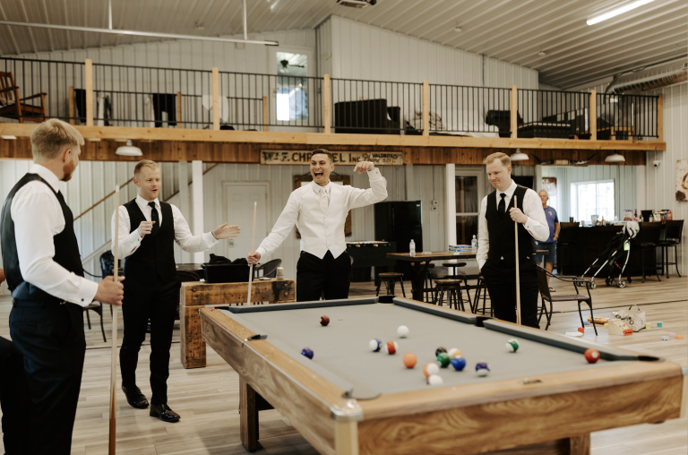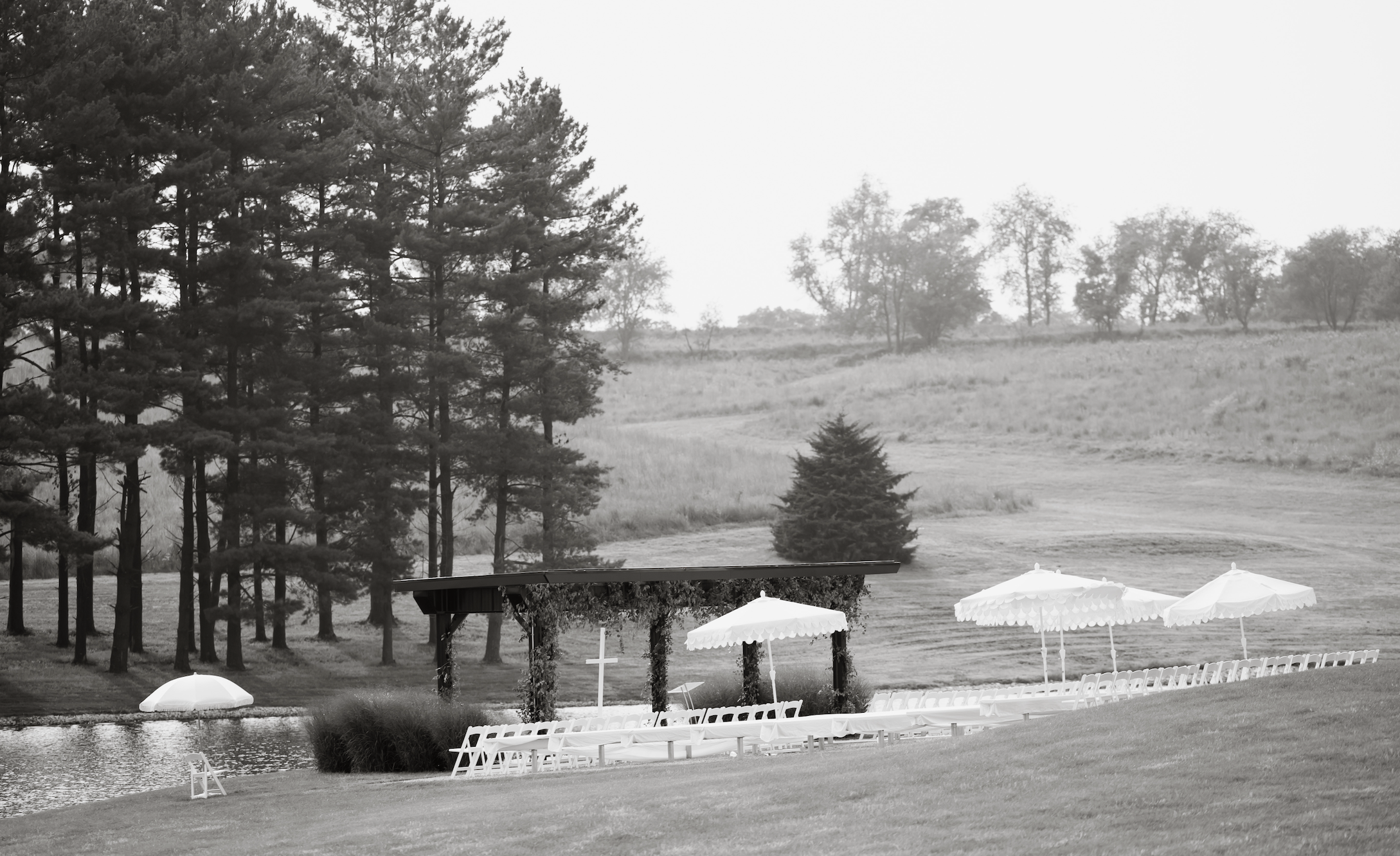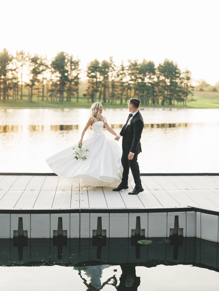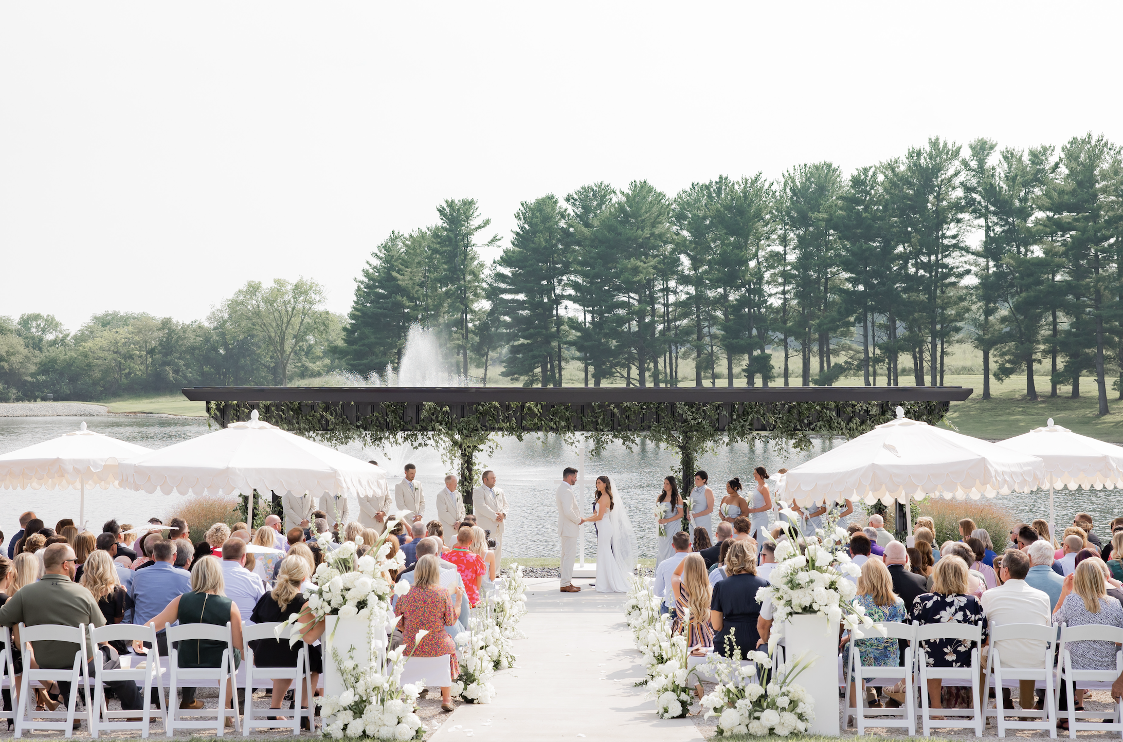 A wedding should be a true reflection of a couple's love story—one-of-a-kind, heartfelt, and beautifully unforgettable. With a mission to bring loved ones together in celebration, the Gathering Grounds offers a refined setting where timeless memories are made. When you choose the Gathering Grounds for your wedding, you step into a world of grandeur, where every detail is thoughtfully curated to elevate your celebration. Nestled on 100 private acres just 45 miles south of Des Moines, this stunning estate offers sweeping views of Iowa's natural beauty, on-site lodging accommodations, and picturesque lakeside backdrops along eight acres of shimmering water. At the heart of the Gathering Grounds is the Waterfront Venue—a breathtaking space featuring an open layout, a dramatic two-story fireplace, expansive windows, and cascading chandeliers. Outside, the lakeside ceremony site continues the estate's elegance with a custom arbor and striking water feature, naturally framed by mature trees and golden sunsets. Blending modern sophistication with serene surroundings, the Waterfront offers a warm, refined atmosphere that beautifully complements any event aesthetic.